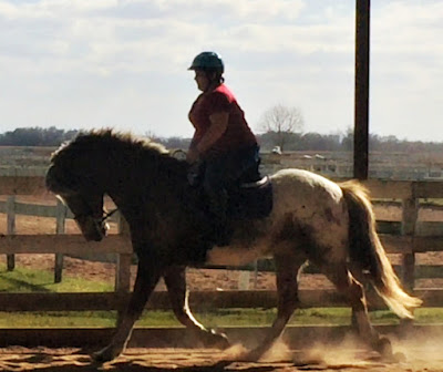 This is where I wish I had written about this sooner. I've forgotten the details. I know we left later than expected. My mom and dad went to go find a gas station while I tacked up. Then it was time to ride. I warmed him up while telling my trainer what I knew about his history. Then we did a lot of trot work. He did extremely well, a bit quick as always but much easier to handle in the closed space. This is where I struggled more than he did. It had been years since I had ridden in a lesson and the posting for an extended amount of time winded me.